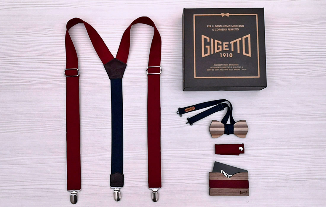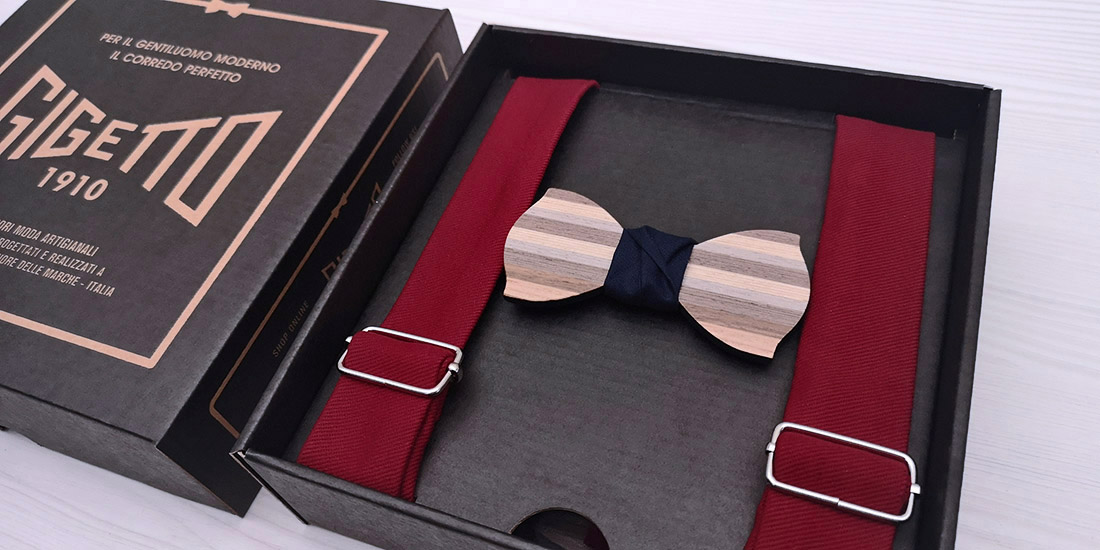 GIGETTO 1910 è un marchio d’eccellenza, una combinazione di arte e artigianato. Papillon in legno, bretelle uomo e accessori moda completamente Made in Italy. Per gli spiriti liberi che amano farsi notare!